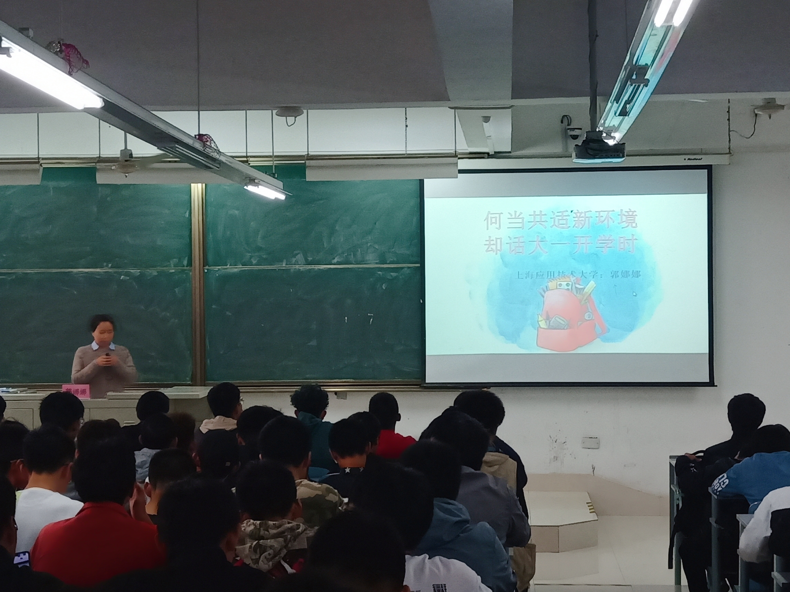 此次讲座,郭娜娜老师主要从四个方面开展:新生入学遇到的困难与惊喜;在校期间可能遇到的问题及解决办法;大学期间学习和生活的规划以及人生的几点建议等。郭老师文采飞扬,举例生动形象。在此过程中,郭老师还通过小调查与学生互动,为大家适应大学新环境做了建议和分析。郭老师还向大一新生描述了大学生活的不同方式,鼓励学生走出宿舍,多参加学科竞赛和三创活动,为自己以后的人生写下精彩的一笔。郭老师的讲座深入浅出,会场时不时爆出阵阵掌声。