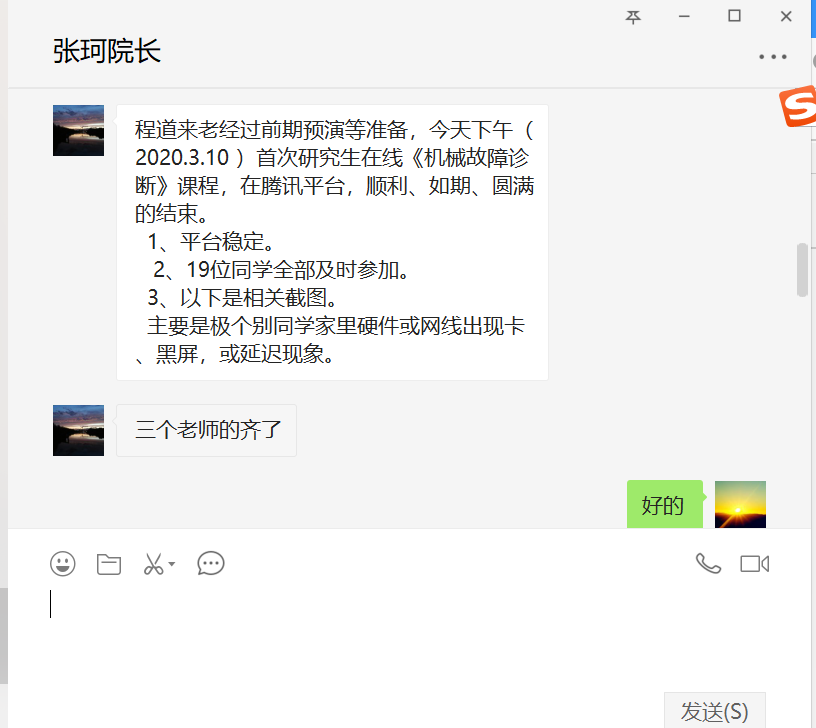 学院研究生们是线上上课的直接参与者和体验者,对于各任课老师精心准备的课程,上完课后广大学生反馈比较强烈,对老师精心准备的课程表示感谢,同时反馈好,也充分体现出学院老师在前期克服重重困难,对专业课认真精心准备,保证学生上课质量不减,推进线上教学成功进行。
