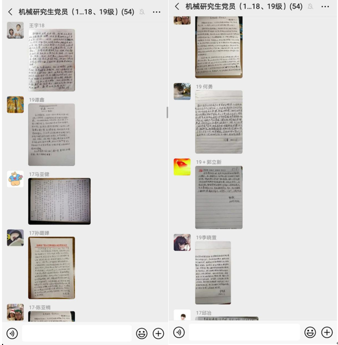为了继续拓展“不忘初心、牢记使命”主题教育成效,坚决打赢疫情防控阻击战,在疫情防控期间做好学生思想工作、卫生教育宣传工作和心理安抚工作,在疫情防控狙击战中发挥好学生党员先锋模范作用,机械工程学院研究生各年级党支部于2020年2月5日,19:00-20:00开展网上组织生活会,采用网上讨论发言形式。