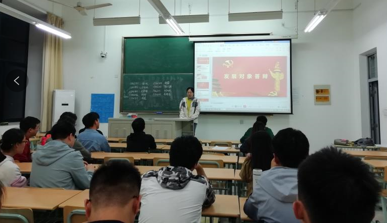 2019年10月31日晚18:00点,机械学院在一教C304召开拟发展对象答辩会。首先,张斌等15名拟发展对象候选人分别就思想,学习,生活和工作等方便开展自我陈述。在接受了党的教育,系统地了解了党的历史、性质、奋斗目标、建党宗旨、组织制度和组织原则等知识后,同学们对共产党的认识更加深刻,参加活动更加丰富,为同学服务的热情更加高涨。发展对象候选人还深刻剖析了自身的不足之处,希望随着时间的推移,心智的成熟,阅历的增长,克服缺点,不断的提高个人素养。自我陈述后,支部书记郑慧老师针对党的理论知识和时政热点话题进行提问,了解入党积极分子培养考察期间的思想政治表现。最后,支部书记郑老师进行了总结,希望全体拟发展对象积极发挥模范带头作用,进一步加强党的基本知识及时事政治的学习,努力提高对党的认识,自觉践行社会主义核心价值观。