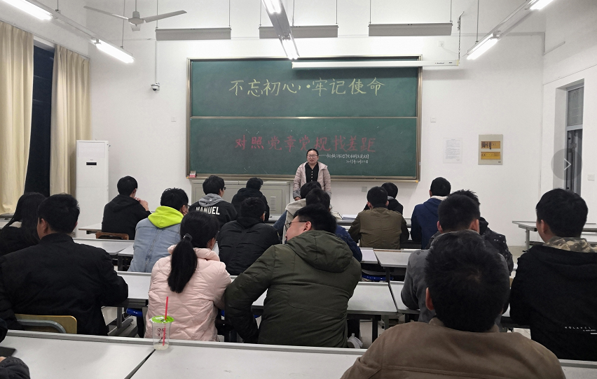 2019年11月25日晚,机械工程学院本科生党支部在第一教学楼C402正式召开“不忘初心,牢记使命”“对照党章党规找差距”主题教育活动。出席本次活动的人员有机械工程学院本科生党支部书记郑慧老师和党支部成员。