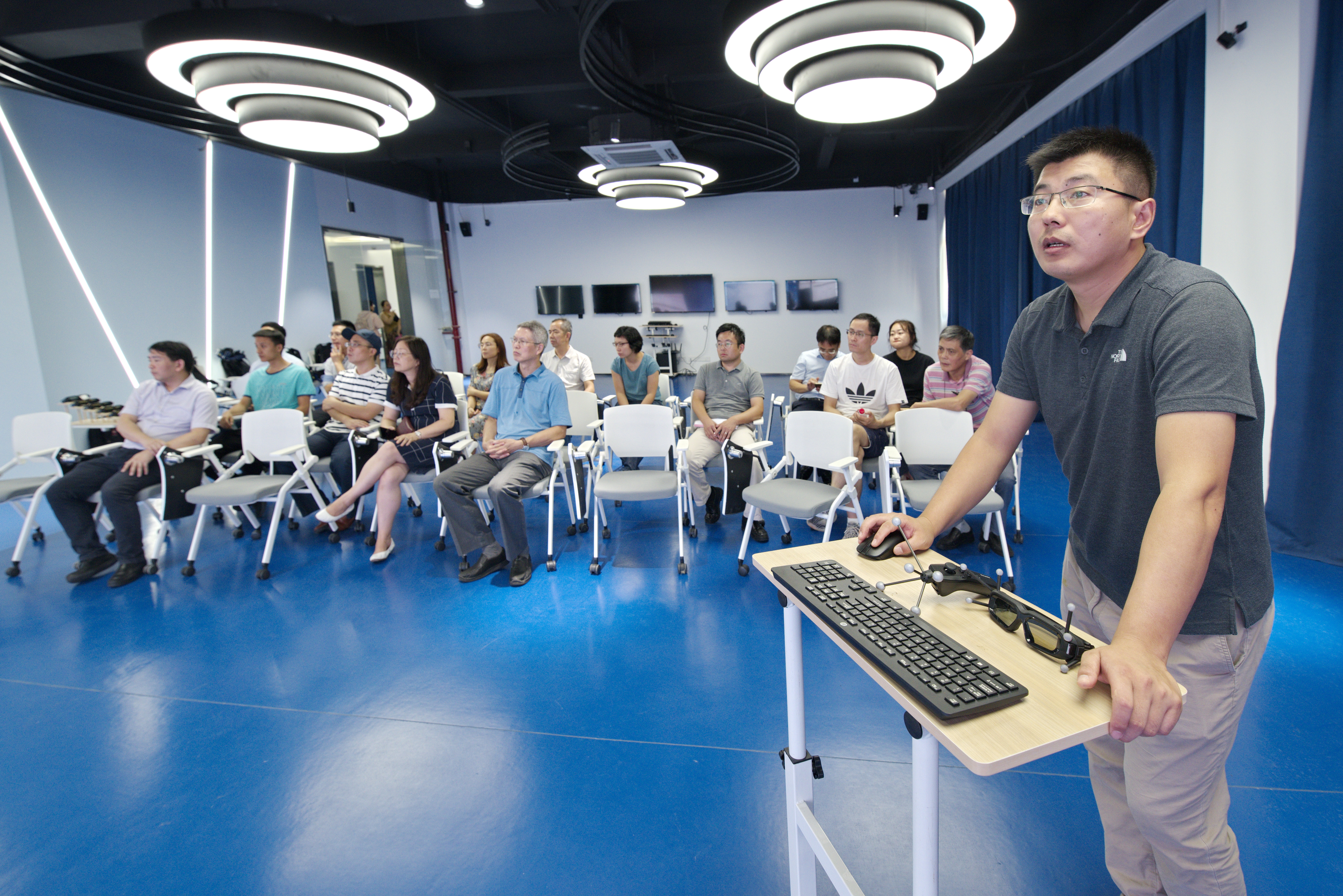 张锁怀对来宾一行表示欢迎,并介绍学校VR虚拟仿真实验教学建设情况。董超介绍了东富龙公司的运营情况、演示了虚拟仿真在制药工程中的应用及其他高校VR虚拟仿真实验教学案例。