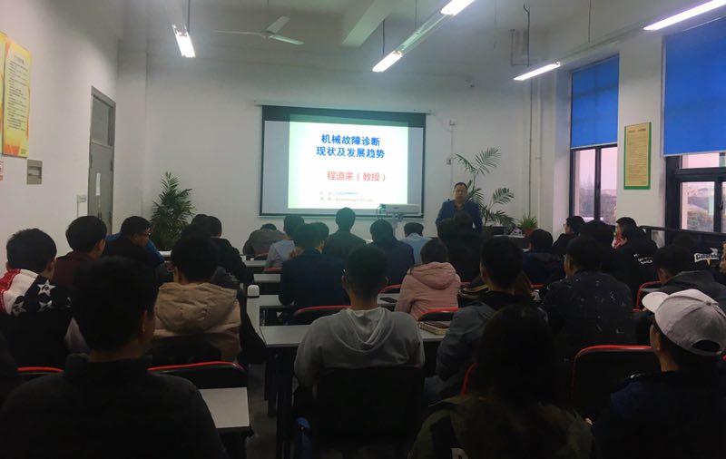 程教授生动有趣的从机械故障的定义入手,由浅入深的讲解了机械故障分类和检测方法,以及未来机械检测发展方向,着重强调了机械故障诊断与检测的重要性,结合自己的工作经验和一些企业的实际例子,让同学们认识到对于机械检测的必要性,并且为同学们指出了许多比较有发展方向的研究方向。程教授讲座语言通俗生动,同学们听得津津有味,教授不时提出一些问题启发同学们思考,与同学们进行讨论,会场洋溢着浓郁的学术氛围。