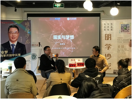 12月27日,由我校学工部主办,机械工程学院承办的第六期“明学沙龙”在我校一般体验中心举办。沙龙邀请到我校07届毕业生、现任“虔创资本”创始人、AA加速器合伙人(洪泰基金)张孝良先生,向同学们作了:“梦想与现实:创业梦——在改革开放中实现”的主题交流分享。张孝良先生围绕时代背景、创业素养、创业理念、价值观系统等方面,与我校学生展开对话,沙龙由我院学生工作负责人陈文博主持。