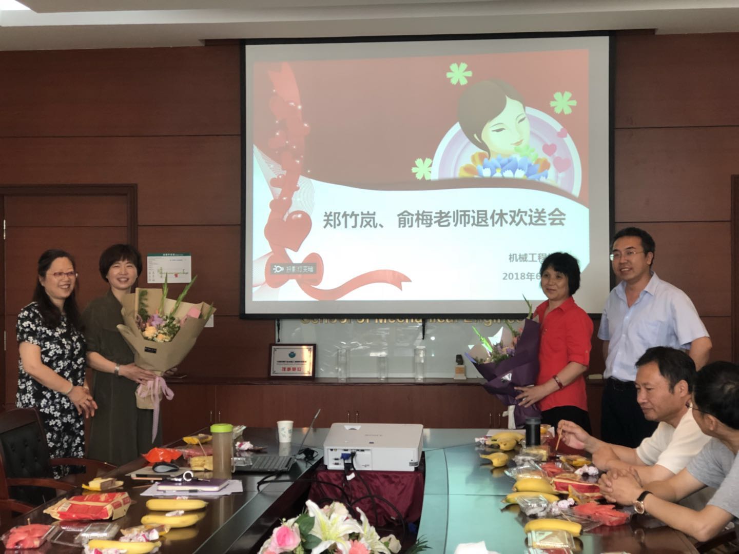 6月8日上午,机械工程学院会议室洋溢着愉悦的气氛。学院领导、教师代表欢聚一堂,欢送可亲可敬的郑竹岚、俞梅老师光荣退休。