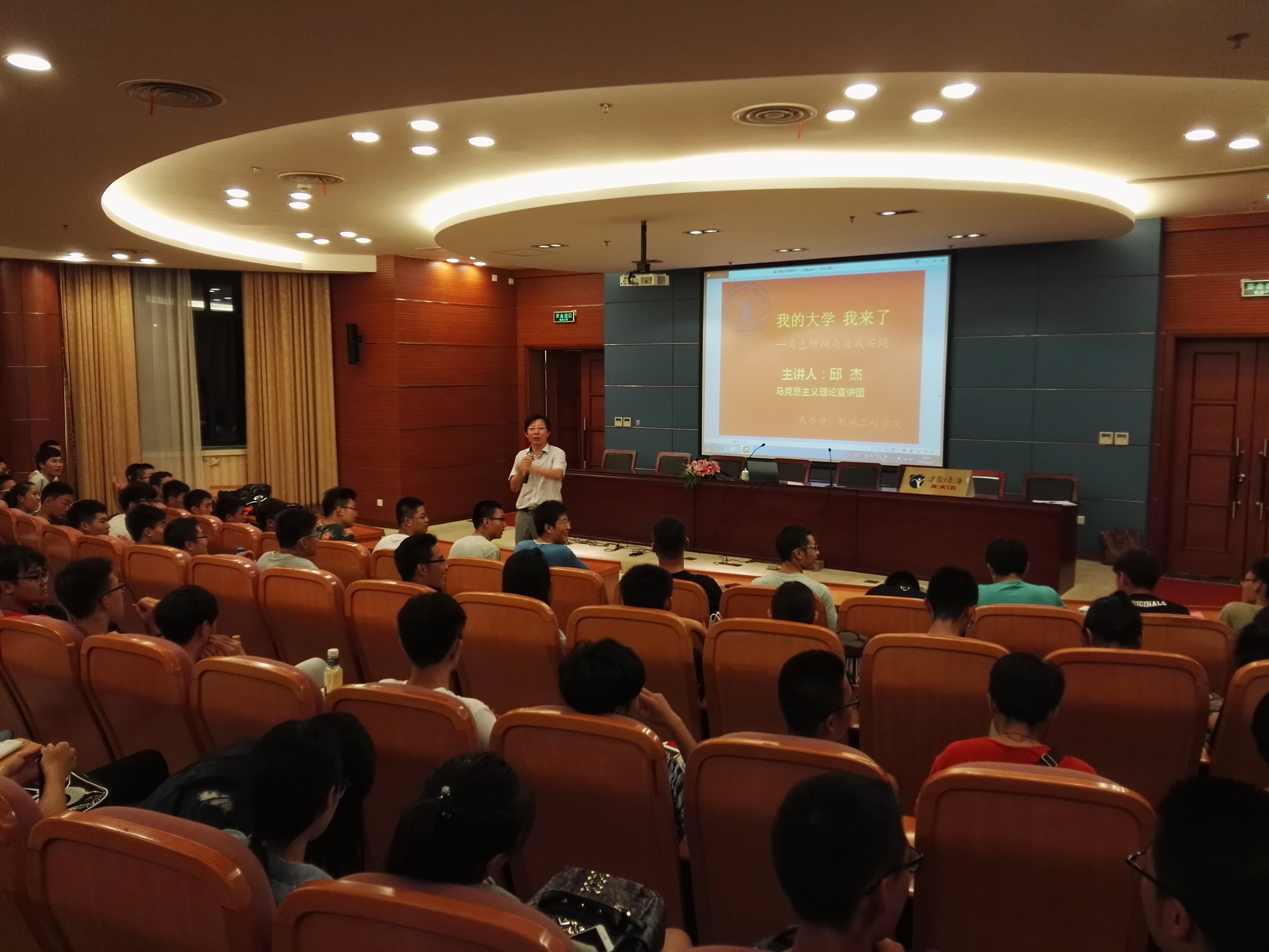 9月27日18:00,校团委主办,机械学院团总支承办的“才聚语海”天天讲暨机械学院新生入学主题教育讲座在行政楼117成功举办。本次讲座题为“我的大学,我来了——完美人格与自我实现”,主讲人为马克思主义理论宣讲团成员,马克思主义教育部邱杰副教授,机械学院师生代表近200人参加了此次讲座。