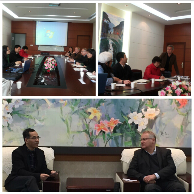 随后,教务处处长周小理、国际交流处处长王瑛、机械工程学院院长张东民、副院长张慧敏等在第一学科楼AA324会议室接待了高国兴和Faller一行。王瑛对学校中外合作交流情况进行了简要介绍,详细介绍了我校和德国一些学校的合作历史。高国兴介绍了工商外国语学校中本贯通项目申报情况,看好工商外国语学校和应用技术学院联合申报中本贯通具有的专业优势和地理优势。周小理表示中本贯通是应用型本科改革的一个方面,是优势学科的强强结合,并询问了了德国巴伐利亚职业培训公司的培养模式和收费问题。张东民表示中外合作和中本贯通都是为满足学生需求,两个项目融合能充分提高学生动手应用能力和国际化适应能力,对未来合作前景看好。