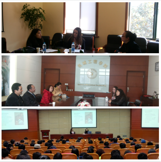 下午,电气学院党总支书记徐斌、机械工程学院院长张东民与Emily一行就两校进一步专业对接及合作进行了初步交流。随后,Emily在图书馆B101向机械学院、电气学院13级、14级中美合作班同学进行了面对面宣讲。Emily介绍了中密西根大学的整体教育情况、校园文化以及和我校的2+2合作项目,对CMU招生要求做了具体说明,并详细列举了申请CMU所需资料。本次宣讲会气氛活跃,在中外合作班同学们中引起了积极反响,宣讲会在同学们的掌声中圆满结束。会后有同学留下来与对方进行了互动。