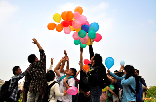 活动最后,同学们将“心情纸”系在气球上,并统一绑在一起放飞,让大家的青春纠结随风而逝,让大家的青春快乐自由飞翔。