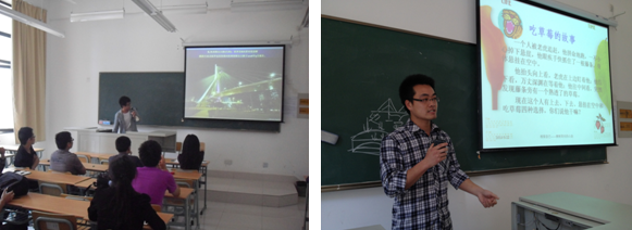 本次活动主要在2012级机械设计及理论专业研究生中展开。活动中,学生熊飞和韦汉春分别做了题为《认知桥梁》、《相信自己——拥有阳光的心态》的报告。《认知桥梁》从世界十大著名桥梁的介绍展开,由浅入深,对中国桥梁设计建造的现状和发展做了深入的分析。《相信自己——拥有阳光心态》从心理学的角度对当前学生面临的普遍心理问题进行了分析,通过引用经典案例等展开阐述,鼓励学生拥有良好心态,积极乐观面对生活和学习。