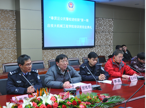 12月21日,机械工程学院首批公民警校培训班在图书馆B103举行结业典礼。奉贤公安分局领导、我校学生处副处长翁德明出席典礼并讲话。