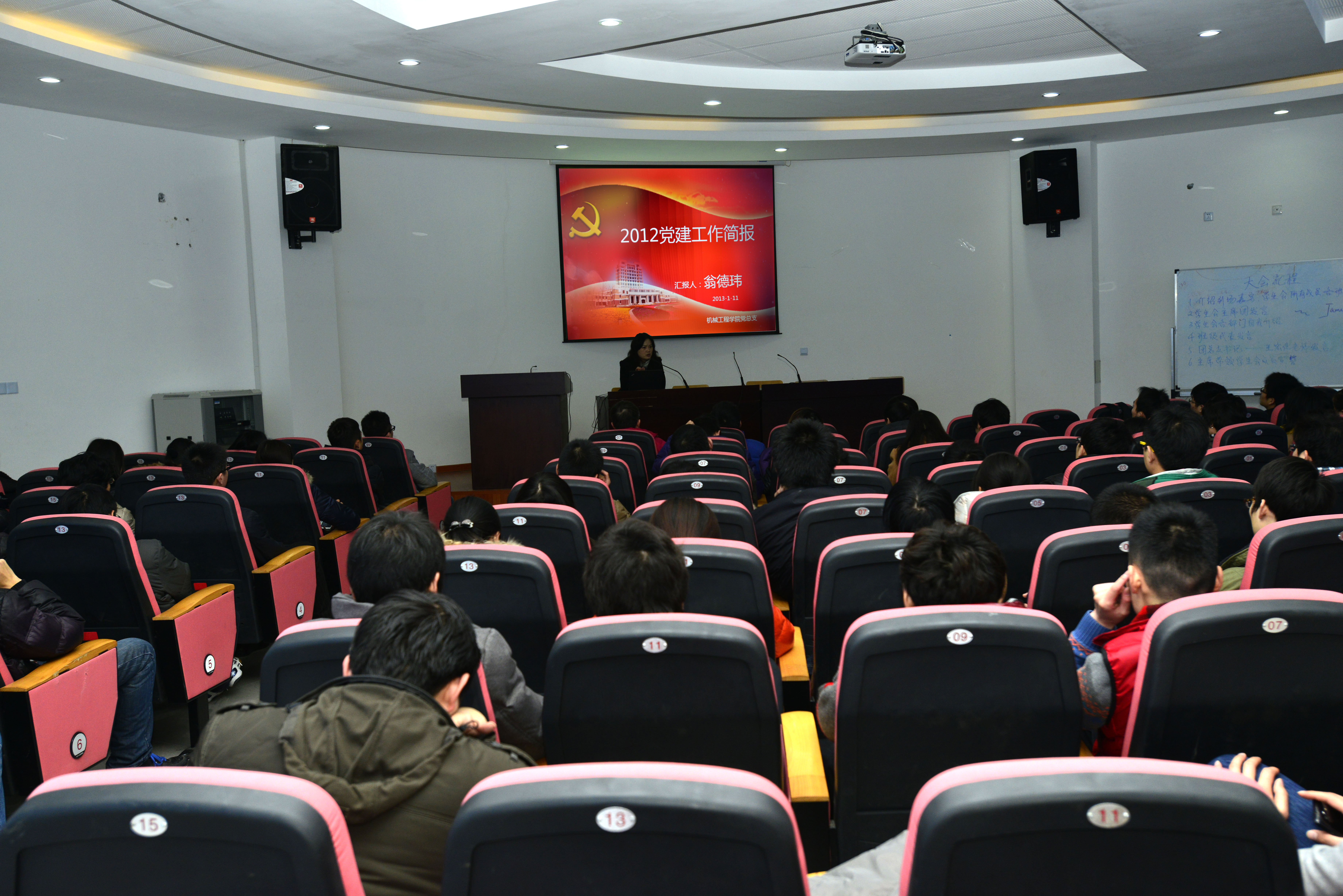 2013年1月11日下午,机械工程学院2012年党建工作汇报会在第一学科楼C111召开,全院师生党员参加了此次会议,会议由机械工程学院党总支书记翁德玮主持。