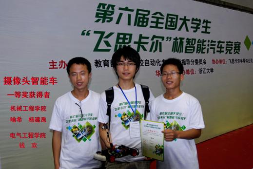 暑期在浙江大学举行了第六届全国大学生“飞思卡尔”杯智能汽车竞赛,来自华东赛区58所高等院校278支队伍,1000多名师生进行了二天激烈的比赛,我校由顾建忠、龚德利等老师带领的六支参赛队伍全部获奖,其中机械工程和电气工程学院共获得一个一等奖,一个二等奖和二个三等奖好成绩,创新学院二支队伍获得了二个三等奖的好成绩。本届参赛成绩打破了我校的历史记录,首次获得一等奖的队伍下月将在西北工业大学参加全国总决赛。