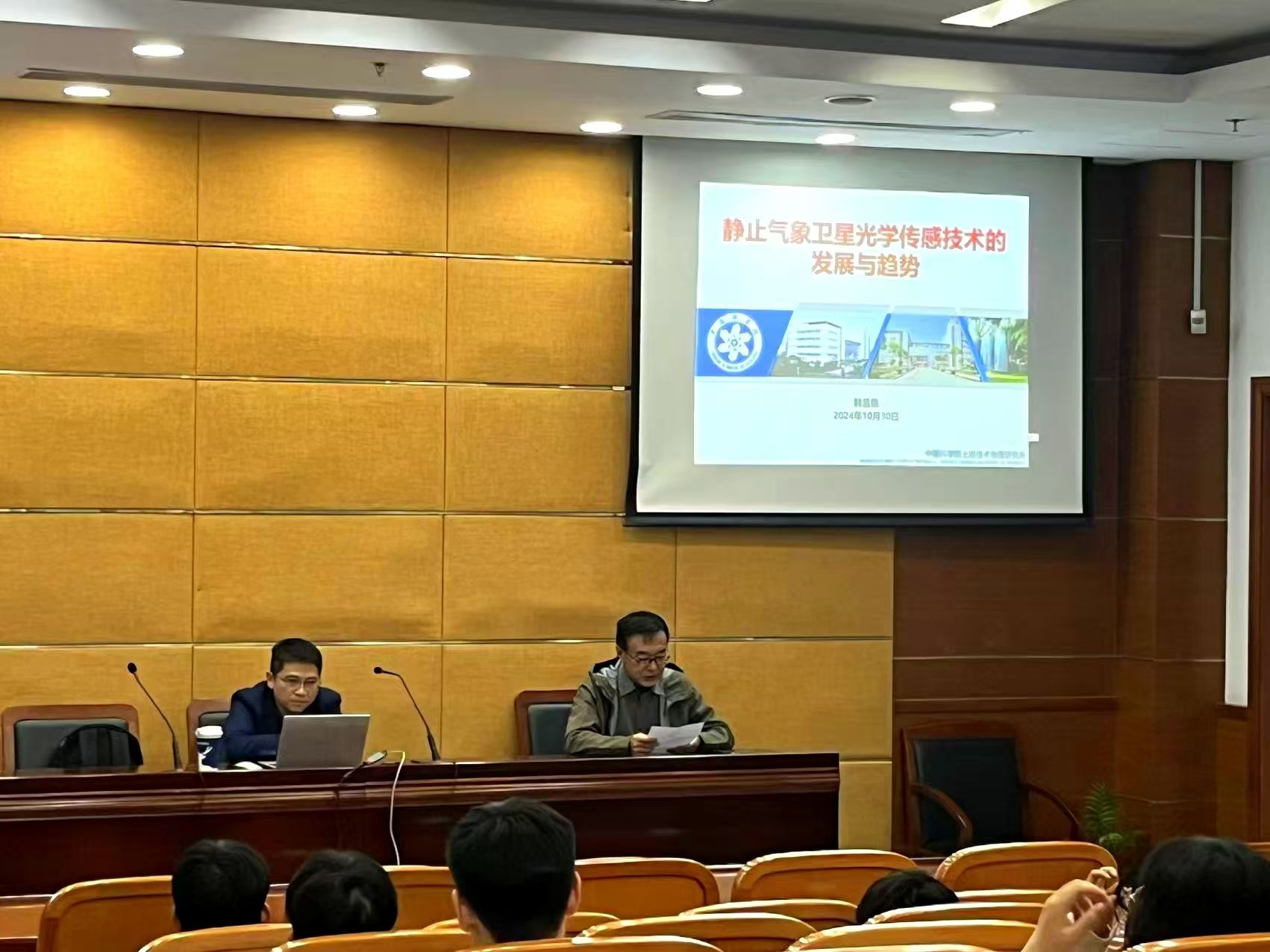1030日下午1300,中科院上海物理技术研究所博士生导师韩昌佩研究员在奉贤校区图书馆B102举行了一场题为静止气象卫星光学传感技术的发展与趋势的学术讲座,机械学院科研副院长张珂主持,学院师生积极参加。