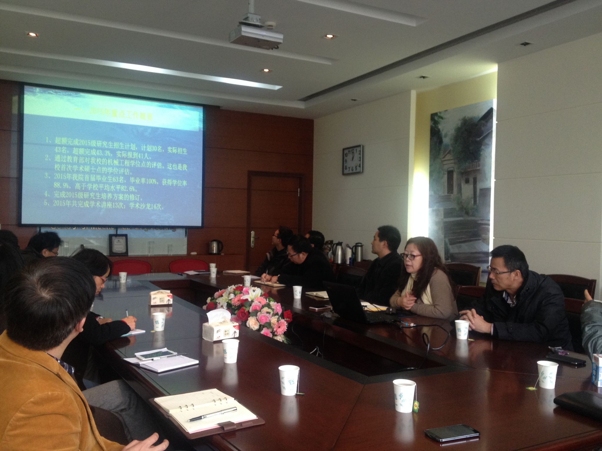张慧敏总结了2015年研究生的工作和取得的成绩。在2015级研究生的招生工作中,机械学院超额完成招生任务及时缓解了学校的招生压力; 2015届机械学院首届毕业生毕业率100%、学位获得率高于学校平均水平,体现了机械学院研究生培养的质量和水平;组织完成了机械工程一级学科硕士点的专项评估工作。张院长还对今后的工作提出要求,同时还就研究生培养环节的重要时间节点加以明确。